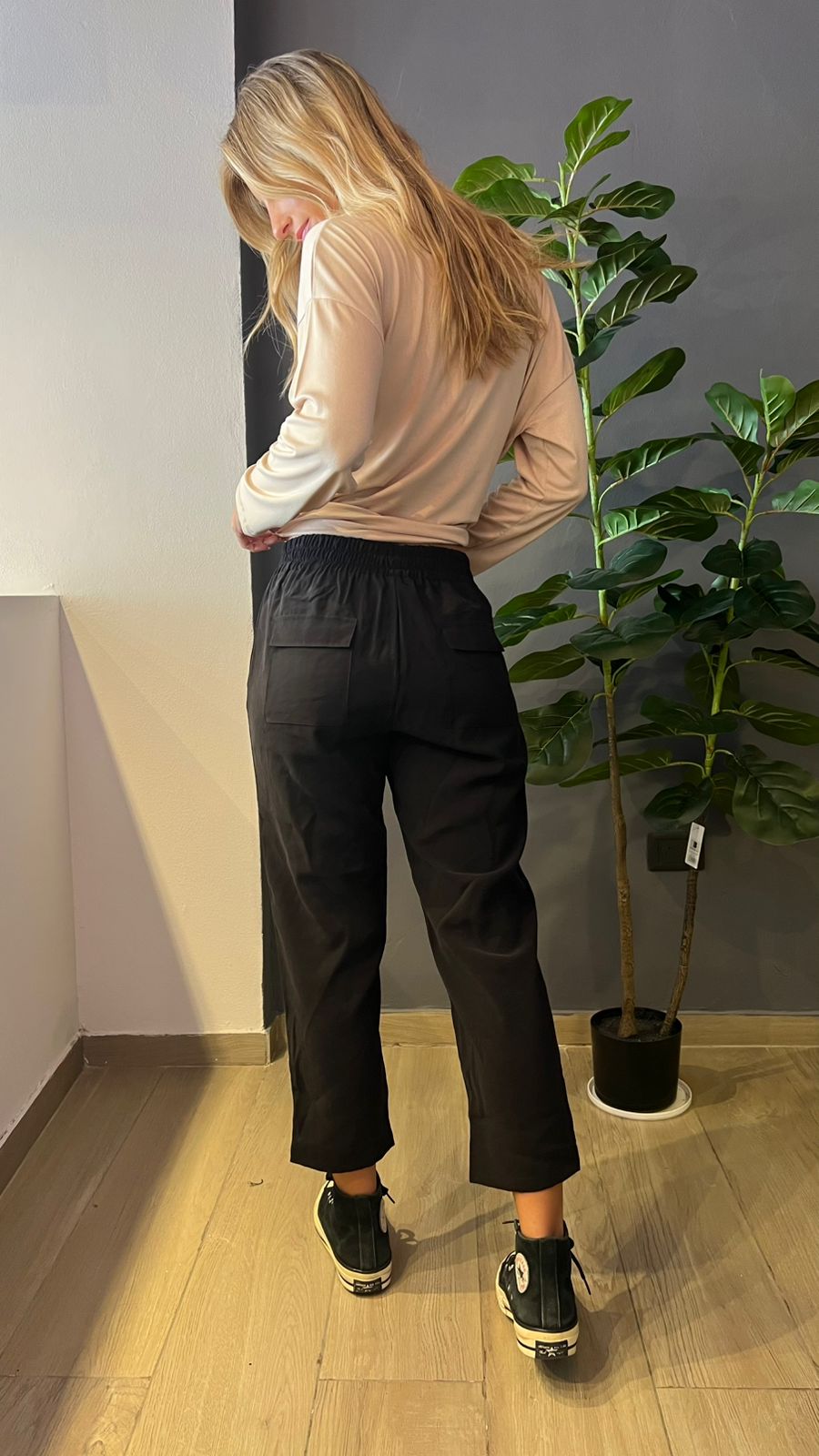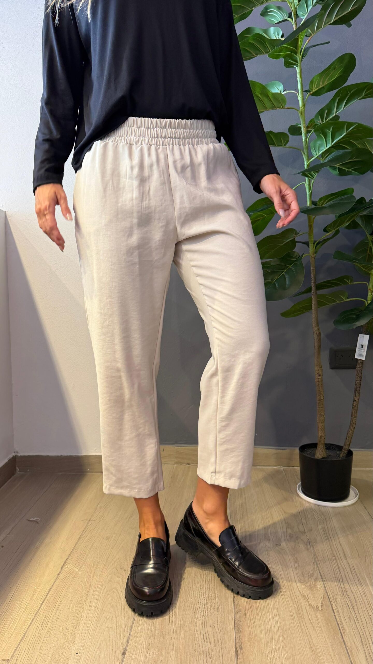 Babucha sastrera estilo tobillero confeccionado en tela técnica transpirable llamado cupro con su tacto frío como piel de durazno y con mucha caída