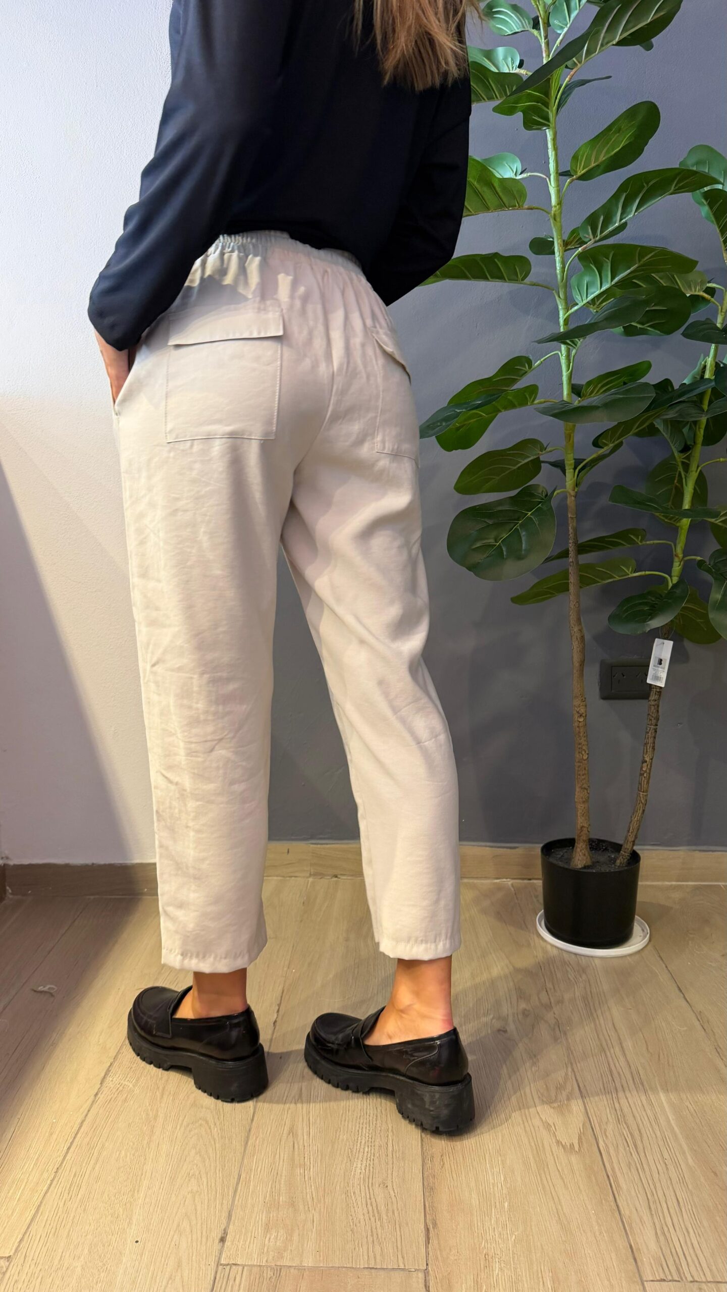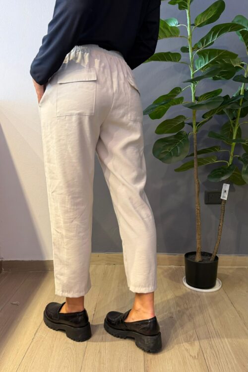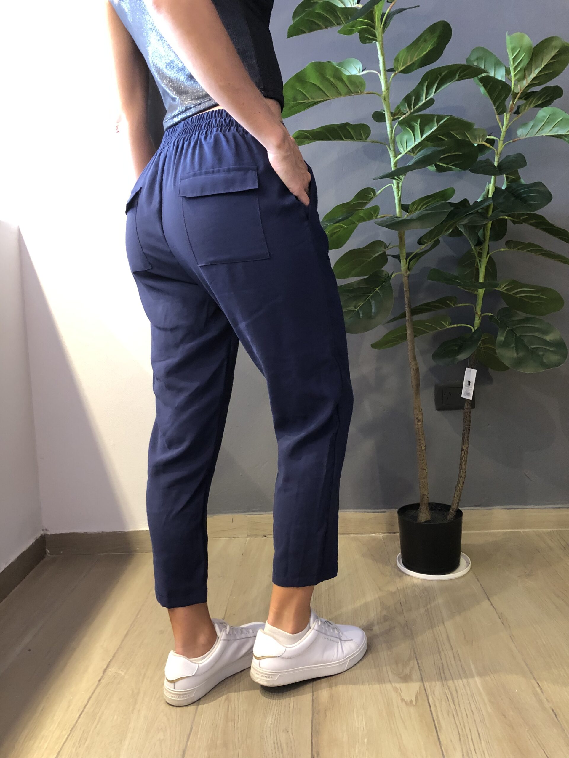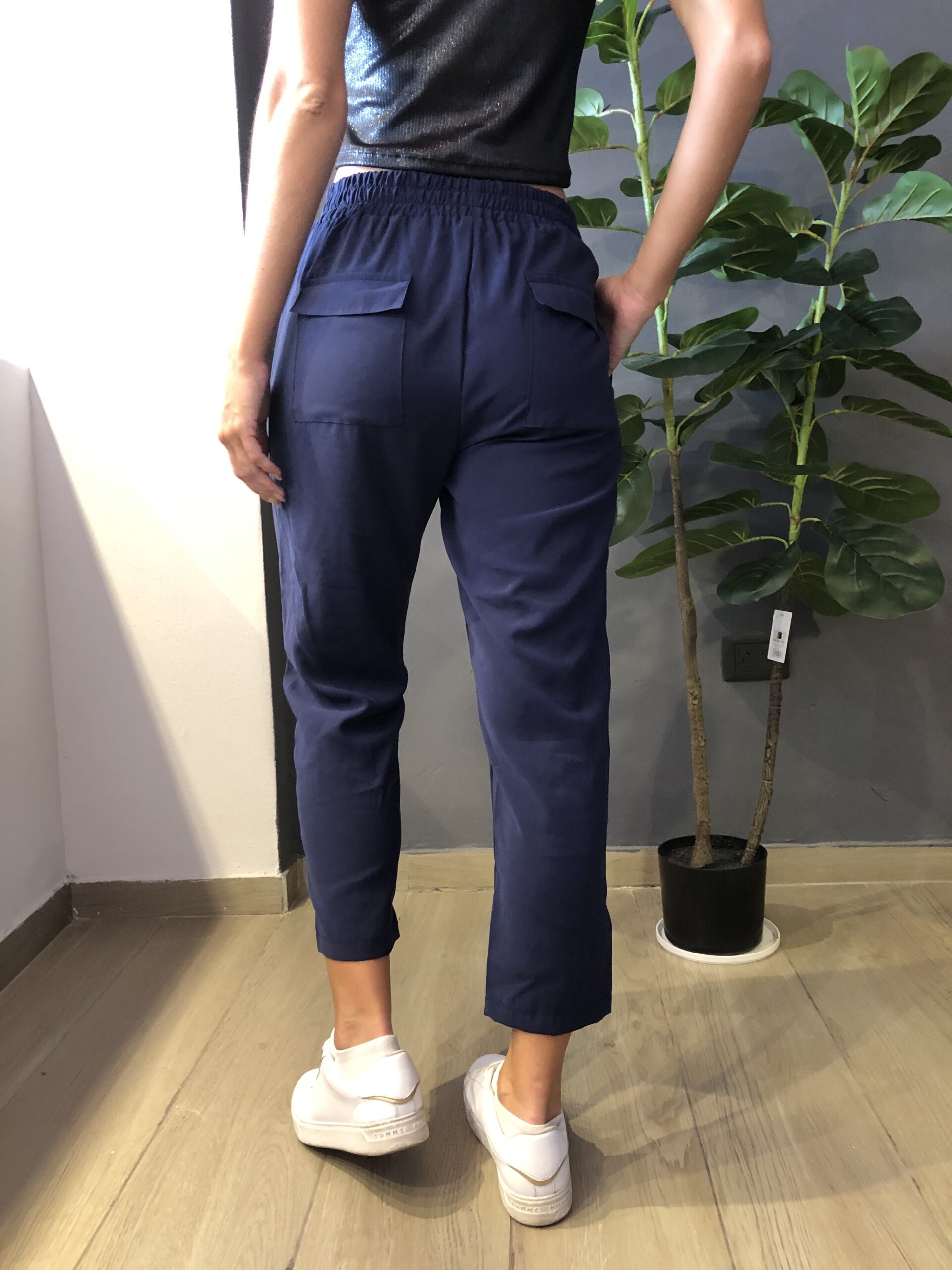 Tapas traseras .bolsillos laterales. Cintura elástizadas