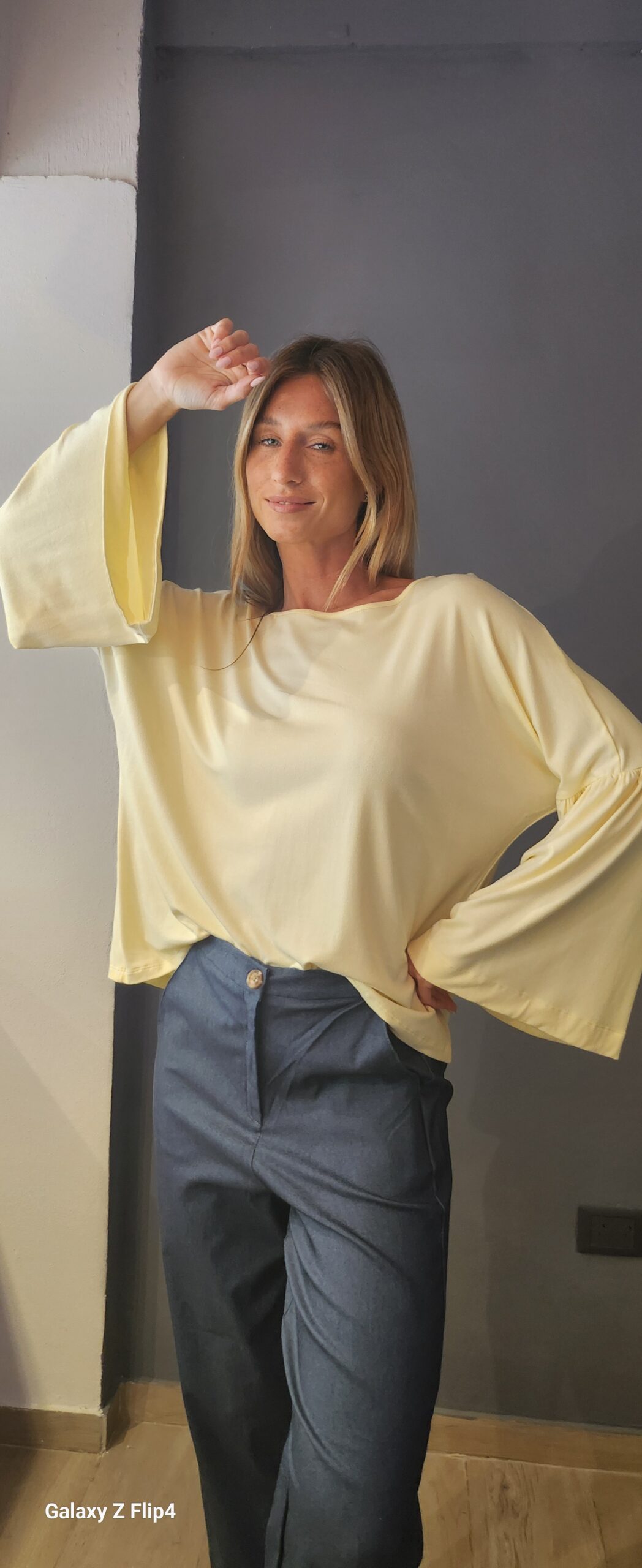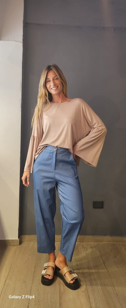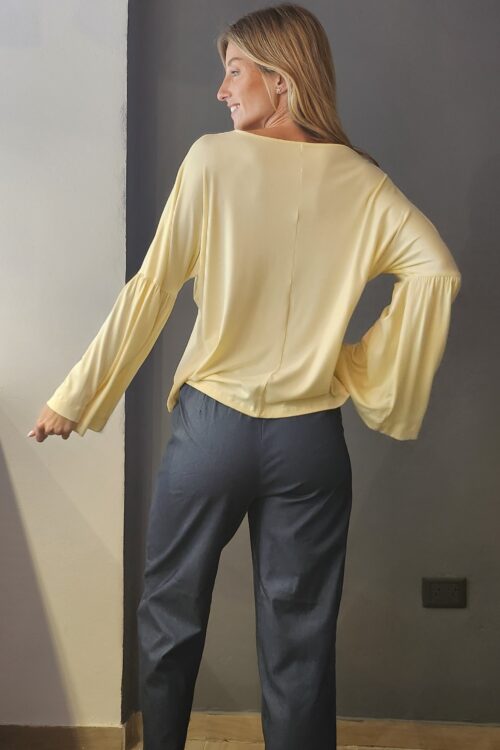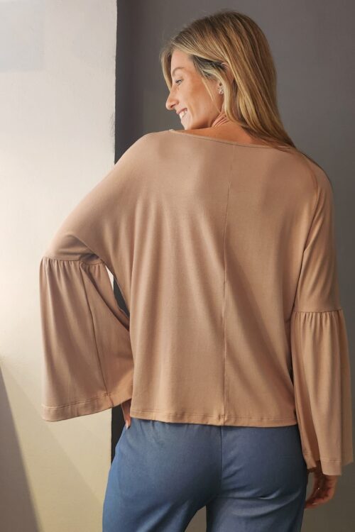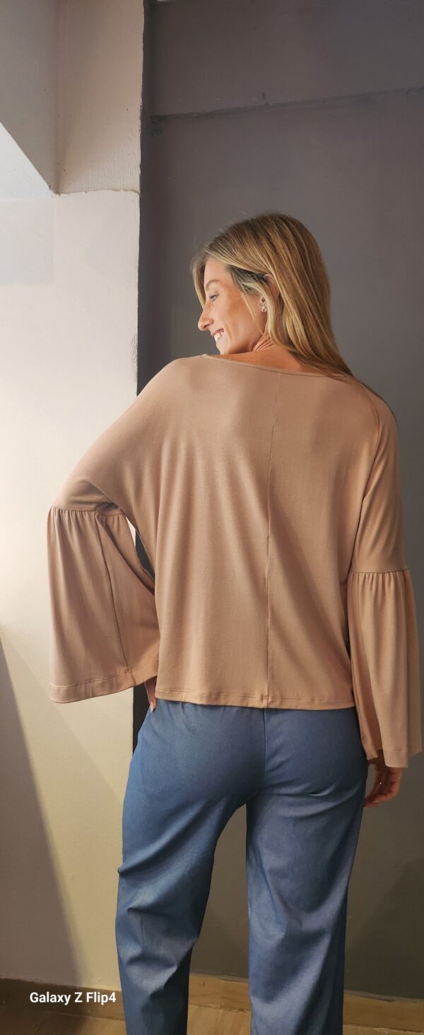 Blusa estilo Boho, manga larga y acampanadas. Confecionado en Crepe Viscosa