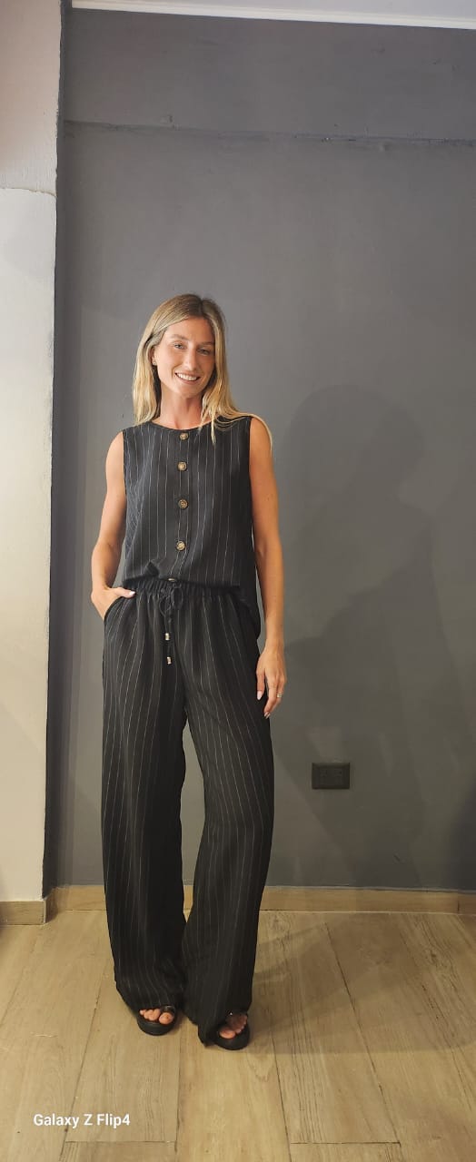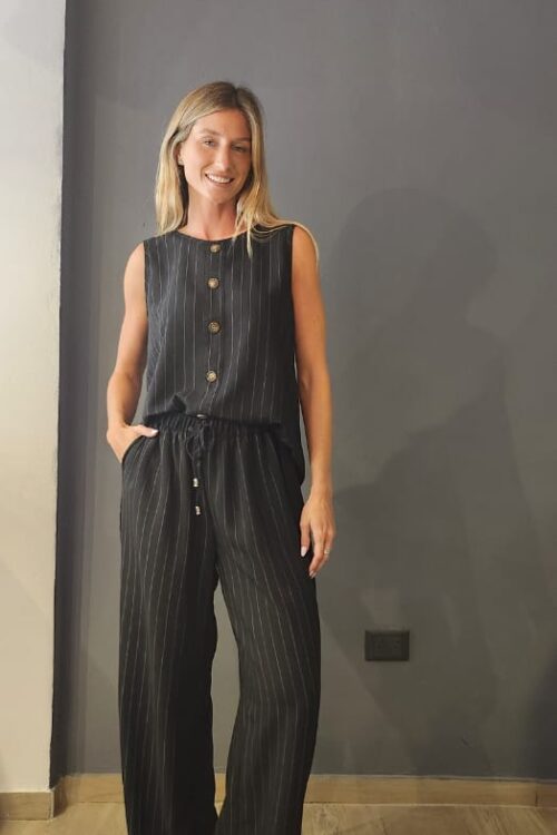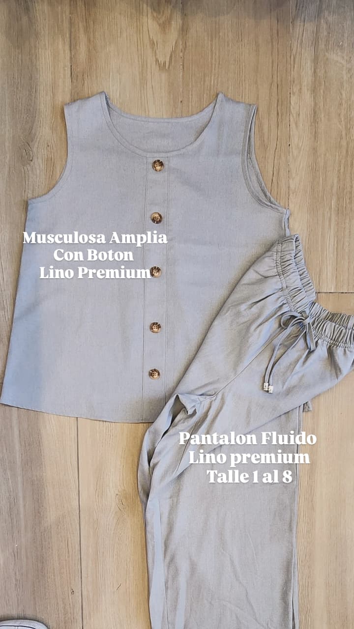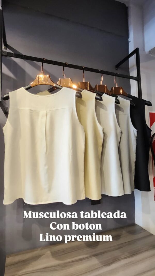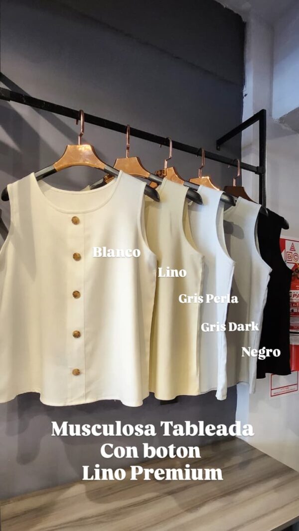 Musculosa confeccionado en lino premium (rayon 65% lino 35 %) con corte bien amplio, con botones en la delantera