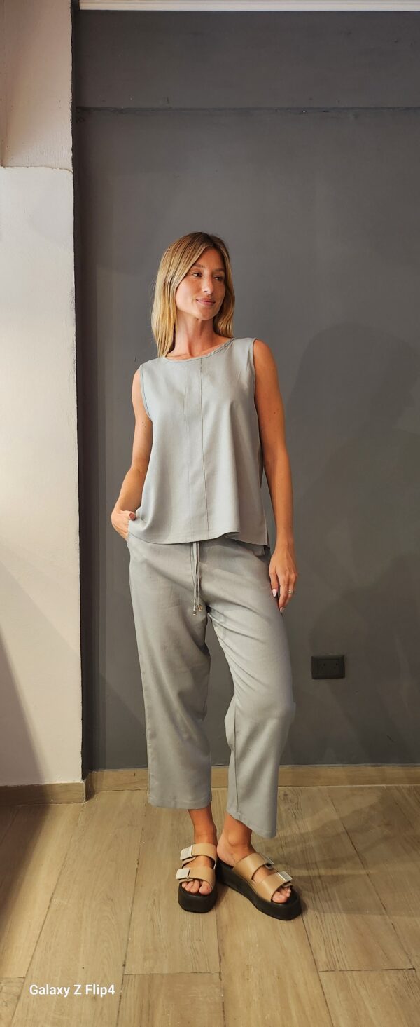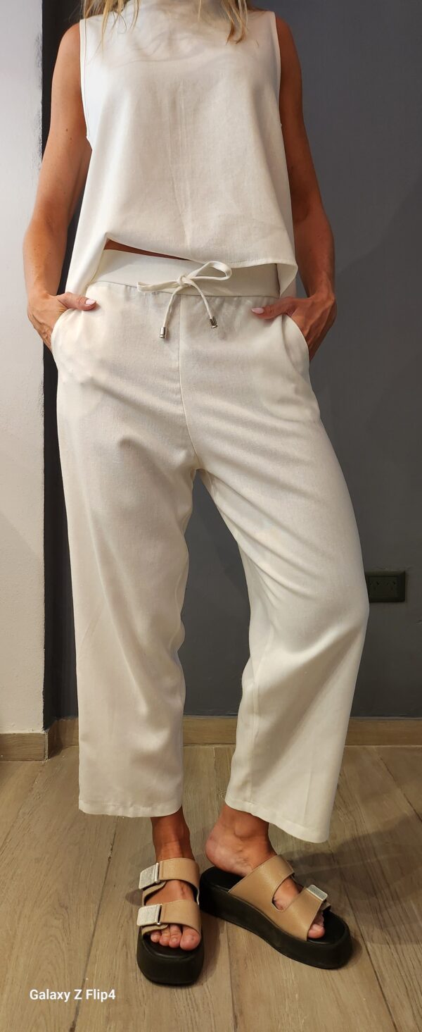 Pantalon corte piyama, confeccionado en lino premium, con cintura elastizada en la parte trasera