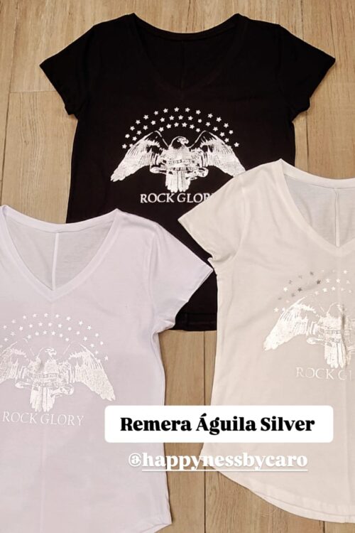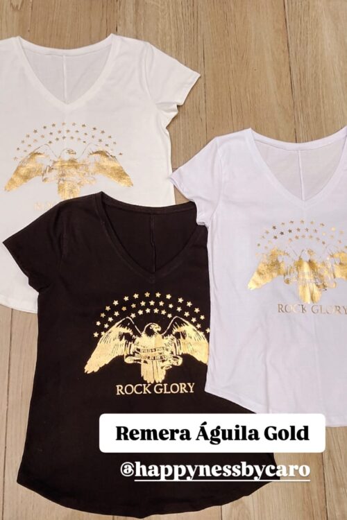 Remera Basica con Escote V con mangas cortas confeccionado en algodon Jersey 30/1 peinado con estampas metalizada con foile dorado y plateado en la delantera con talle unico equivalente al M/L