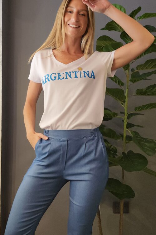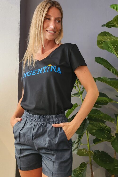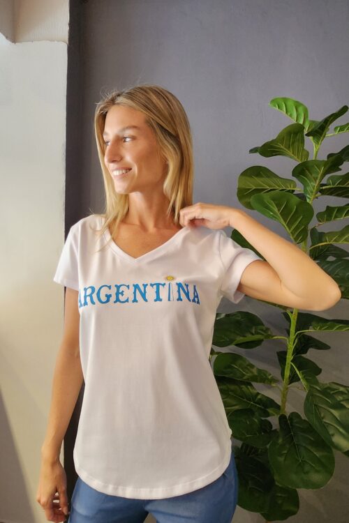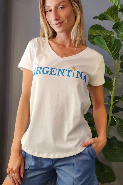 Remera Basica con Escote V con mangas cortas confeccionado en algodon Jersey 30/1 peinado con estampas DTF en la delantera con talle unico equivalente al M/L