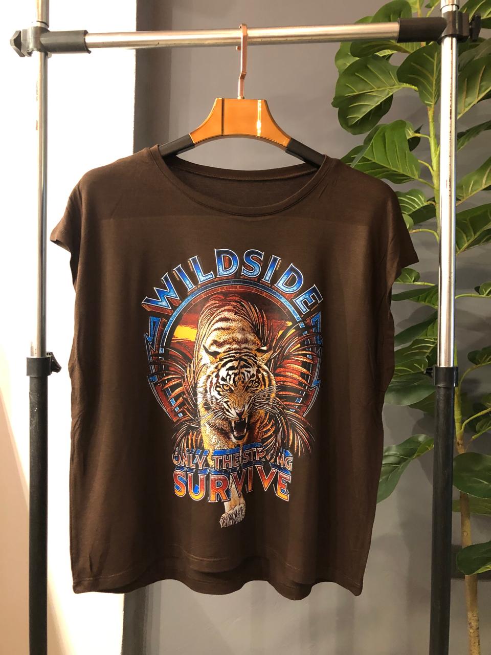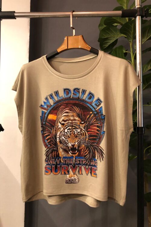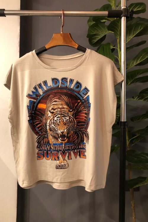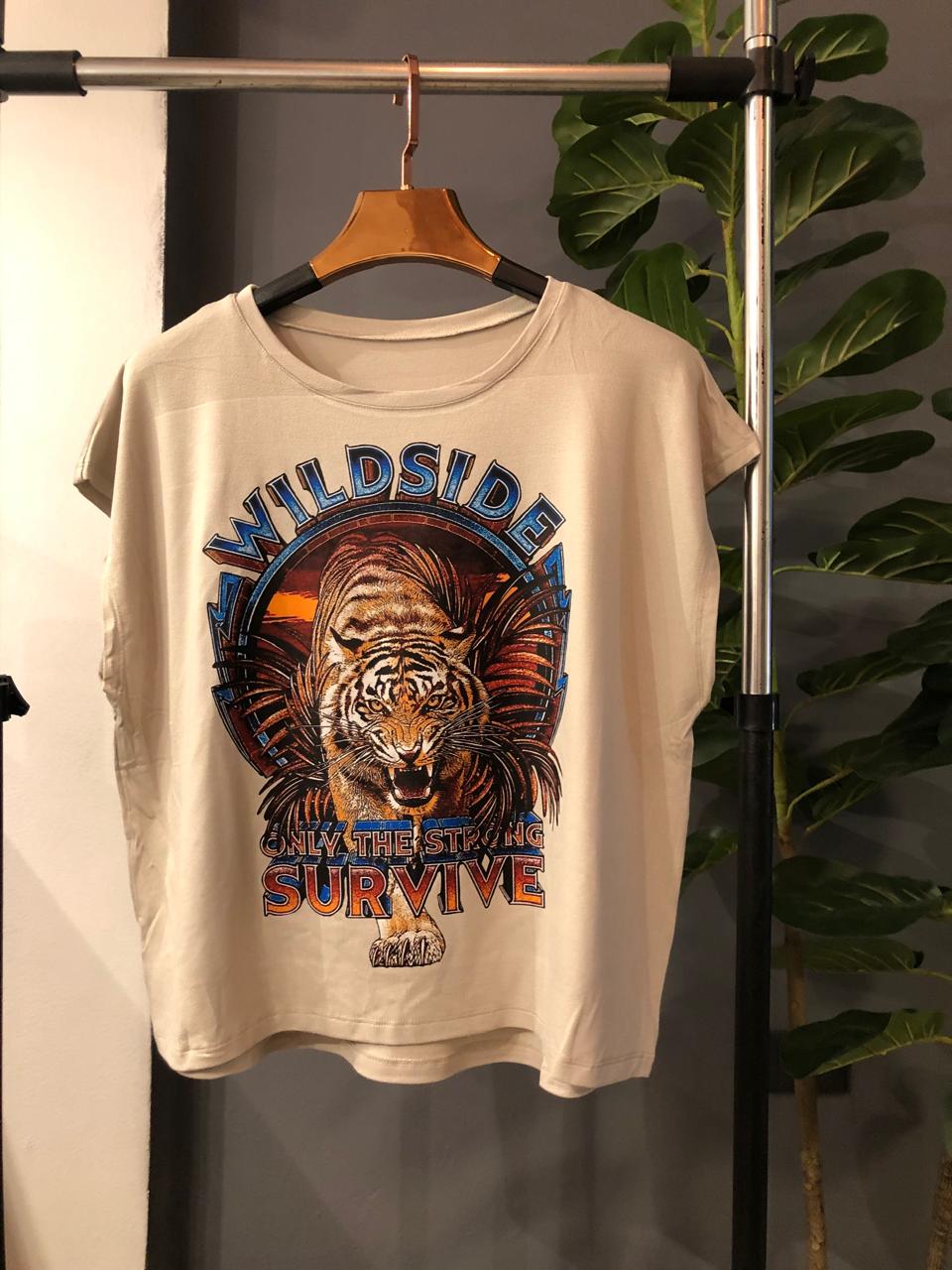 Remera corte amplio con escote redondo confeccionado con Crep Viscolycra