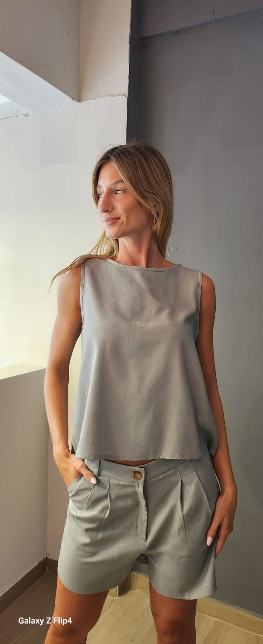 Short Sastrero con pasacintos Confeccionado en Lino Liso Premium